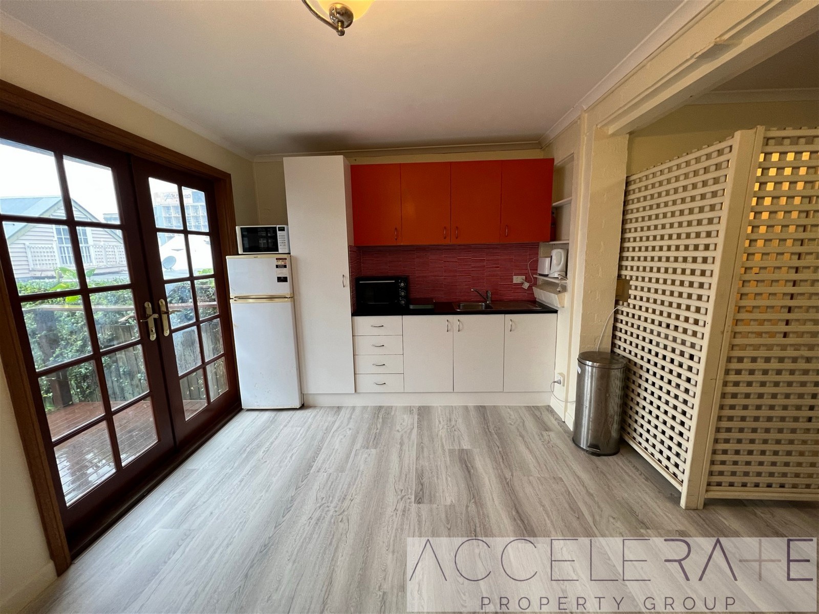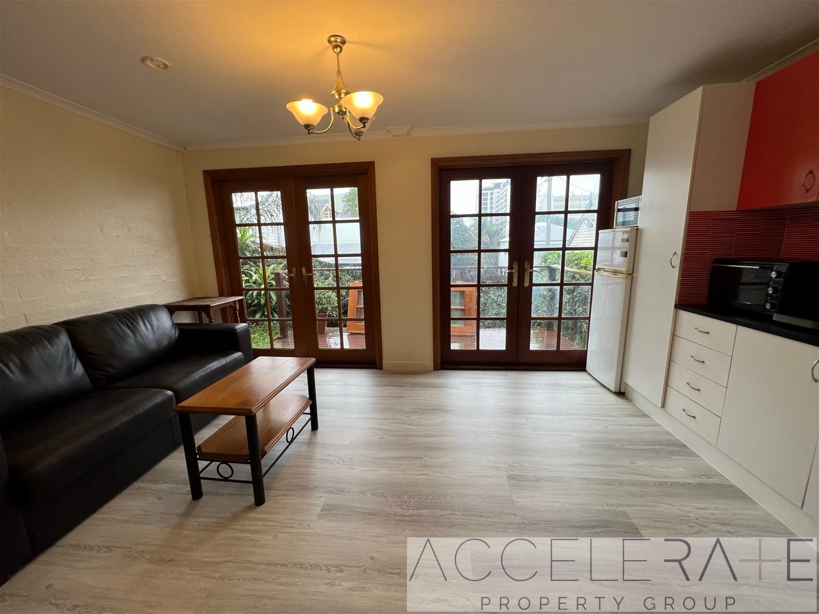 - Good sized living area and dining area. French doors access the balcony