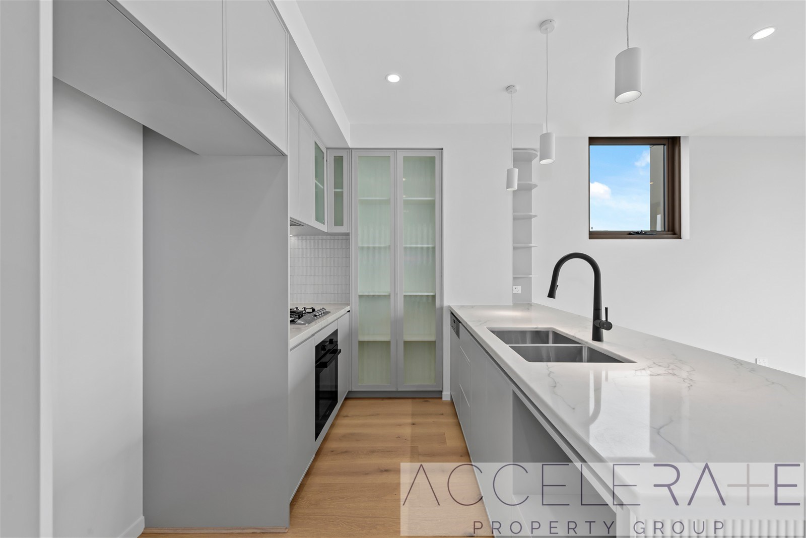 - Spacious kitchen with natural stone benchtops, Miele appliances and gas cooktop