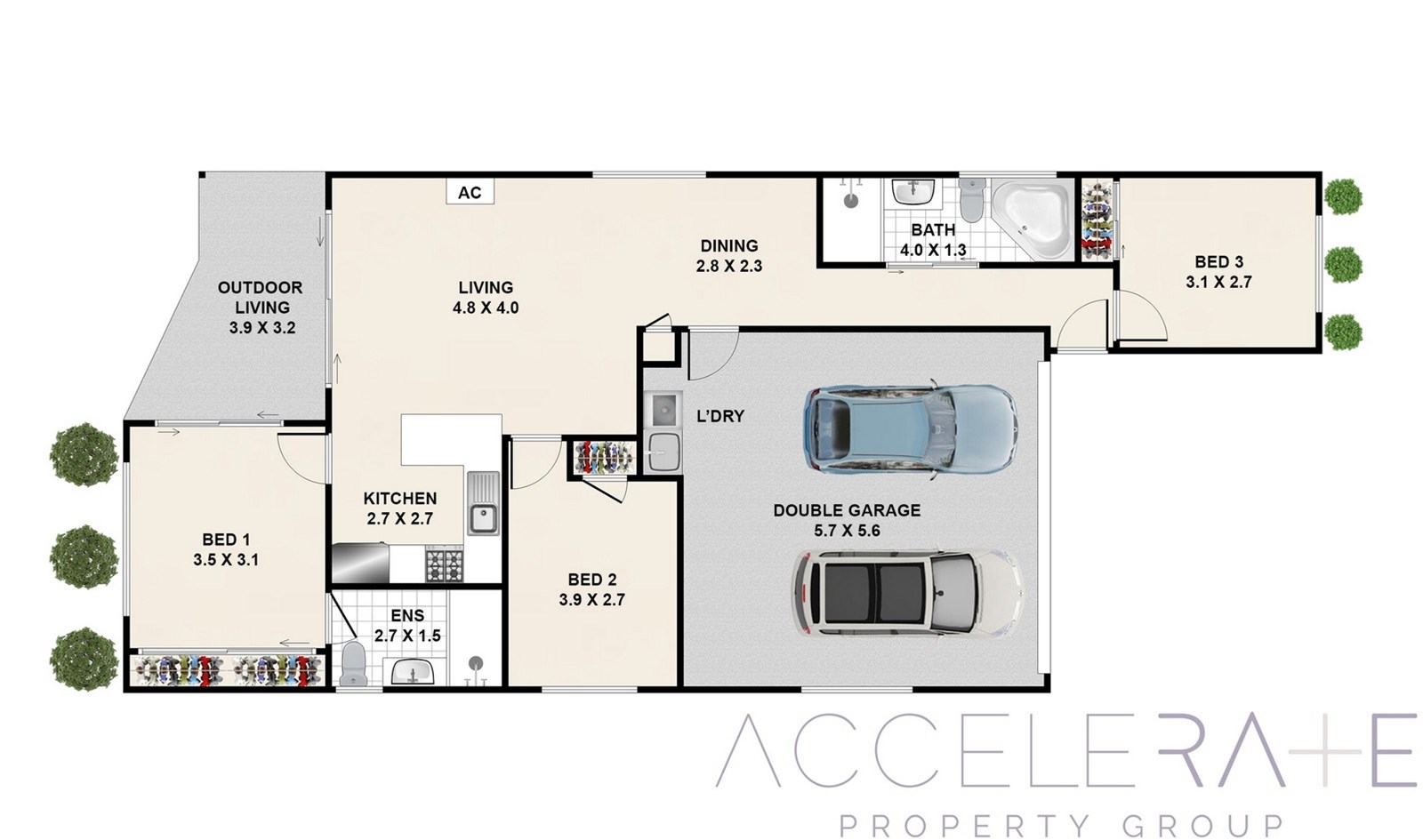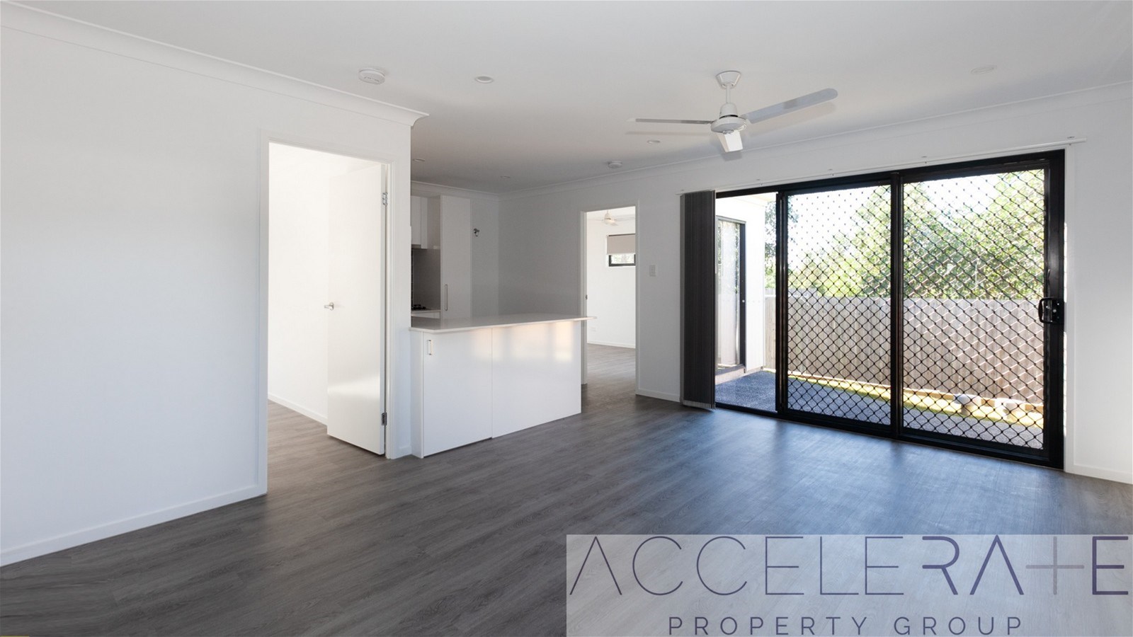 - Open plan kitchen, dining, living area with air conditioning