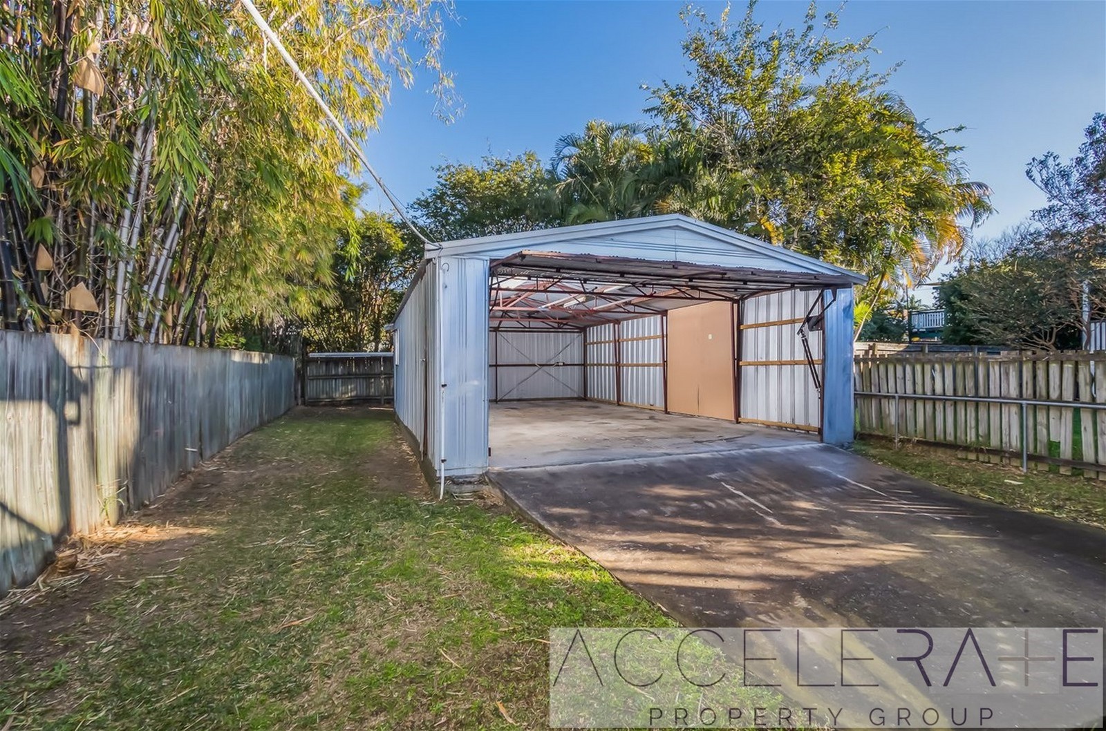 - Powered shed with four car accommodation