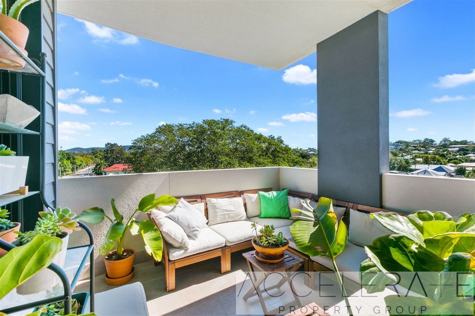 - Balcony with panoramic views across the suburbs
