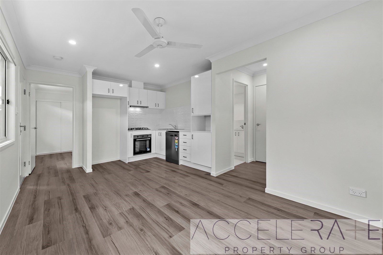 * Open plan kitchen, stone benchtops, stainless oven, dishwasher & GAS cooktop
